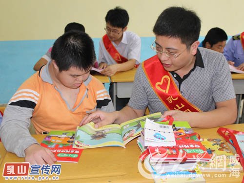 近日,乳山团市委组织十余名青年志愿者到市特殊教育学校,开展关爱特殊青少年群体志愿服务行动,为孩子们送去了100余册图书,并与师生开展互动活动。