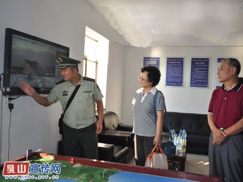 守岛老兵观看小青岛警务室的视频监控系统