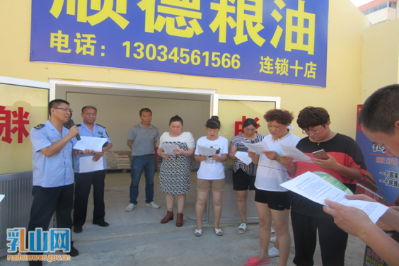 8月11日,乳山市食品药品监督管理局在海峰街红涛市场,组织20余名食品经营业户学习夏秋季食品制作注意事项,防止发生食品安全中毒事故。(杨坤)