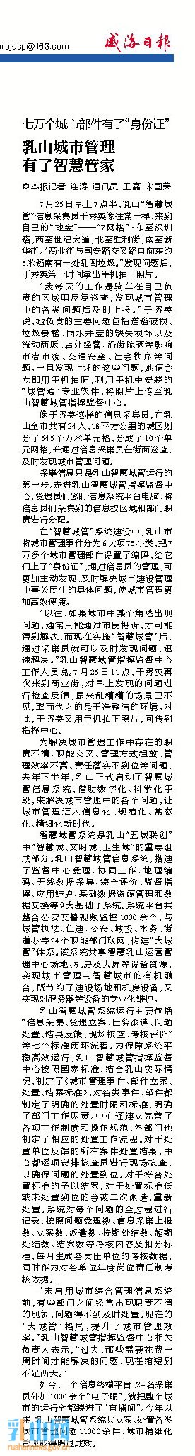 如今,一个信息终端平台、24名采集员外加1000余个“电子眼”,就把整个城市的整体运行全都装进了“直播间”。今年以来,乳山智慧城管系统共立案、处置各类城市管理问题11000余件,城市精细化管理取得明显成效。(连涛 王嘉 宋国荣)
