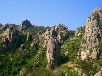 岠嵎山奇石为齐鲁一绝。地貌奇特险峻,山石怪异嶙峋,如禽如兽,似人似物,可谓鬼斧神工,天作之合,被人们誉为“天然石雕园”。主要有岠嵎瀑布、千古猿人、寿星献桃、飞石凌空、骆驼负宝、企鹅观天、玉皇阁、莲真洞等二******景观。登山海拔599.5米的玉皇峰顶,晴观日出,可见“碧海擎红日,绿岭浮白云”。阴察云海,山间云缠雾绕,如入仙境。中央电视台曾在《神州风采》节目中专题介绍过骆驼负宝等景观,电影《山菊花》中的岠嵎山瀑布景观,落差20多米,宽达10余米,水击深崖,阳光下流金溢彩,蔚成大观。