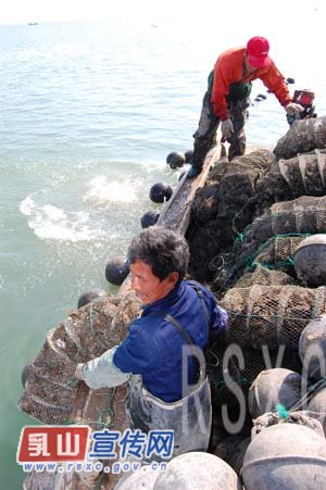 渔民在海洋牧场播种牡蛎