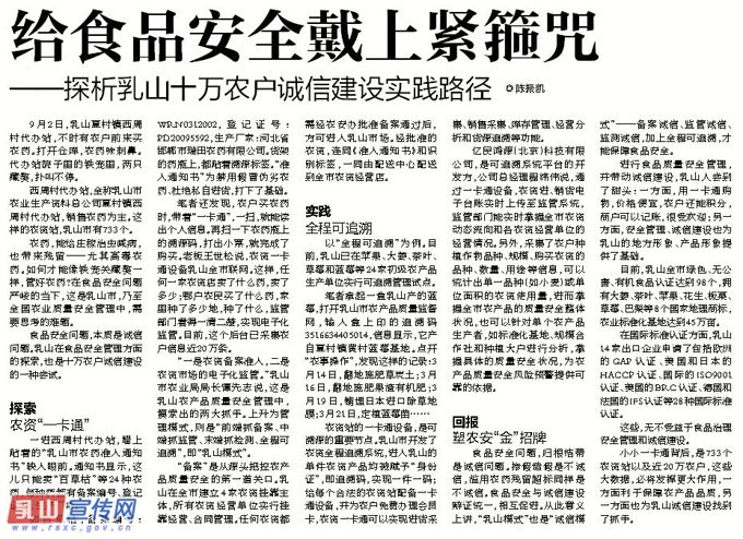 食品安全问题,本质是诚信问题。乳山在食品安全管理方面的探索,也是十万农户诚信建设的一种尝试。