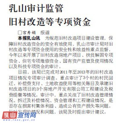 乳山审计监管旧村改造专项资金(大众日报)